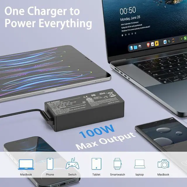 Power Delivery: This 100W charger ensures a speedy recharge for your device ideal for on-the-go use. Its versatility means it can power laptops under 100W guaranteeing optimal performance for your computer and accessories. With its high power output this charger ensures that your devices receive the necessary power for peak performanceWhat's