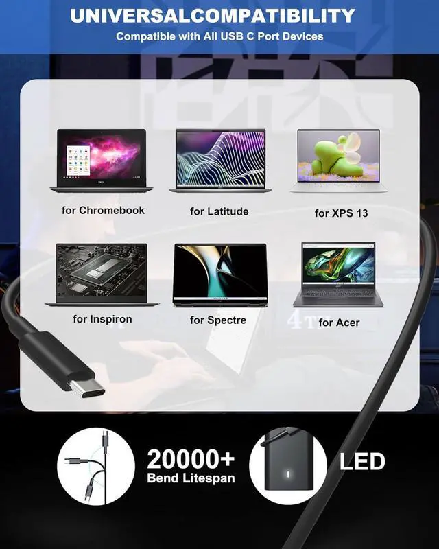 Connector: USB Type C ChargerCompact & Portable DesignOur 65W USB-C laptop charger Small lightweight and travel-friendly. Features built-in multi-protection (over-charge over-voltage over-current over-temperature short-circuit) for safe chargingPOWJDWZ 65W USB C AC AdapterCompatible with Latitude 5000 5420 5520 5400 5290 5320 7420 7410 7430 7480 7490 7320 7330 7340 7440 7530 7640 5285 9330 9420 9430 9520 3540 3450 3550 3440 3340 e5430 5440 5540 5450 5550 e5440 5320 5340 5330 5350 7350 7450 7455 9440 9450 5430 5289 7275 7520 5190 3390 3300 7200 7310 7285 7370 7389 7390 7210 5421 5410 5411 5310 5531 5511 5280 7000 series compatible with XPS 13 9360 9350 9343 3943 9380 9365 9300 9370 9310 9333 9305 7390 9305 9315 9315 2-in-1 9320 Plus seriesPOWJDWZ 65W USB C Power AdapterCompatible with Inspiron 14 7420 7425 7415 7430 5406 5420 5425 5280 5310 5410 5418 5481 5482 5582 7300 7306 7390 7400 7490 7590 7630 5320 16 7620 5620 5625 5630 5635 series compatible with Chromebook 3100 3500 3400 3300 3380 5300 5400 5500 7200 7300 7400 7486 5190 3110 seriesPOWJDWZ Slim 65W Computer Power cord Replacement P/NCompatible with DA65NM190 LA65NM190 LA65NM170 DA65NM170 LA45NM171 DA45NM170 DA30NM150 HA65NM170 HA45NM170 LA45NM150 AA45NM150 HA30NM150 HA45NM180 0M1WCF 08XTW5 D0KFY 04RYWW 0HDCY5 ADP-30CD 02CR08 8XTW5 2YKOF HDCY5 24YNH -F17M7 689C4 470-ABSF Y91PF BA 492-BBSP 492-BBUU 492-BBWZ 492-BBZP DA45NM180 HA45NM180 LA45NM171 0R2MBK 0WC42G JYJNW 0JYJNW 0JYNW JNKWD 0JNKWD 2YK0F 02YK0F M1WCF 3RG0T JT9DM PW7015MCNoticeConfirm compatibility using [CTRL+F] before purchase