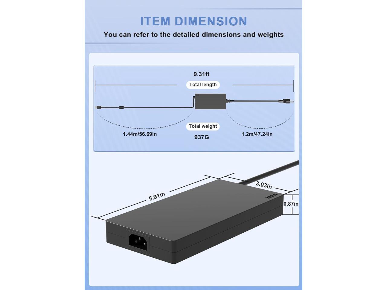 Slim 300W 245W Charger Compatible with Legion Pro 7 5 5i 7i 16ITHg6 16ACHg6 16ARHA7 16IAX7 16IRX9 Y920 R9000P R9000K LOQ 17IRB8 ThinkPad P73 P72 Yoga Pro 9 IdeaPad Pro 5 Laptop