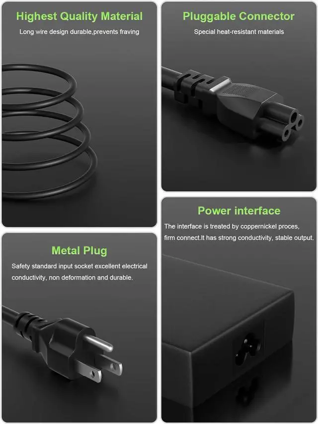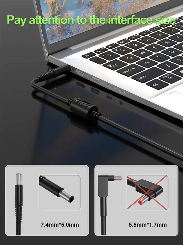 Connector Type: 7.4 mm 5.0 mm (It is not work laptops requiring more than 180W) This Laptop charger offers enhanced protection with safeguards against overcharging overheating short circuits overcurrent and overvoltage. Intelligently distribute Stable and smooth current through durable quality wire optimize charging efficiency and improve laptop battery performance providing reliable safety for your devices and peace of mind. ensure you get the best charge. Fast Charging ---With a compact design the Portable charger is easy to carry and store. Saves more space for power strips ideal for home office and travel. With increase in operating frequency an innovative stacked design and an upgraded circuit board structure new technology makes our latest charger smaller without sacrificing a drop of power. Power up your laptop and give you the productivity & flexibility you need quicklyPackage includes: 1* AC Adapter 1* Power Cable. The packaging is tightly sealed which protects the charger from damage.