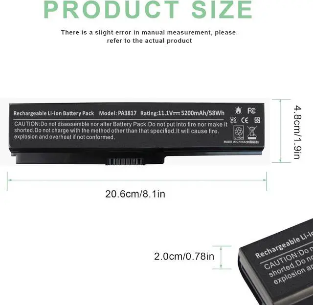 • Battery For Toshiba PA3817U-1BRS Laptop Battery -6 Cells 58Wh 5200mAh, compatible to a665-s5179 a665-s5186 a665-s6050 a665-s6085 a665-s6086 a665-s6094 c655 c655-s5049 c655-s5082 c655-s5118 c655-s5122 c655-s5123 c655-s5128 c655-s5132 c655-s5206 c655-s5212 c655-s5225 c655-s5301