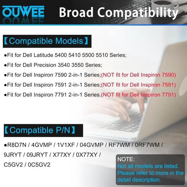 Replacement For LaptopDell Latitude 5400 5410 5500 5510 Precision 3540 3550 Inspiron 7590 2-in-1, Inspiron 7591 2-in-1, Inspiron 7791 2-in-1 Series, NOT fit for Inspiron 7590 7591 7791 Series.