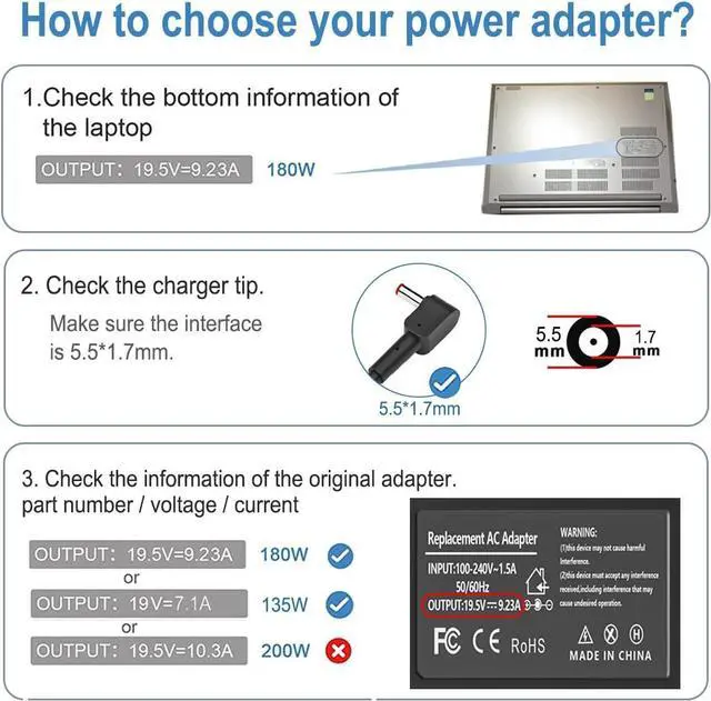 Burflo 180W 135W Charger is compatible with 180W 19.5V 9.23A charger via 5.5 * 1.7 mm tip, meeting the power requirements of more laptops.