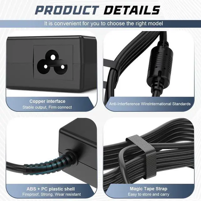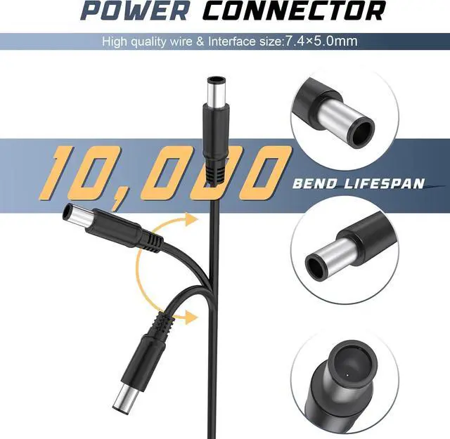 The DC jack size is round 7.4 × 5.0 mm, which means its overall diameter is 7.4 mm. You can check if the charging port of your laptop is approximately 7.4 mm. It is not compatible with 4.5 × 3.0 mm and 3.0 * 1.1 mm thin-head ports or USB-C (Type-C) ports; you can also refer to the photos in the link for details.