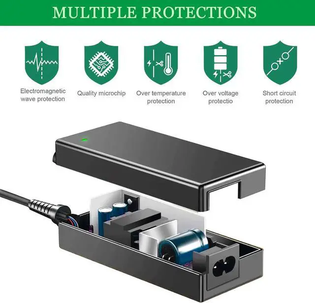 Multiple DC Connectors Included - Features a main DC port size of 5.5 * 2.5 mm (compatible with 5.5 * 2.1 mm) and comes with 10 additional connectors: 7.4 * 5.0 mm, 6.5 * 4.4 mm, 5.5 * 3.0 mm (with pin), 5.5 * 1.7 mm, 4.8 * 1.7 mm, 4.5 * 3.0 mm, 4.0 * 1.7 mm, 4.0 * 1.35 mm, 3.5 * 1.35 mm, 3.0 * 1.0 mm for broad device compatibility.