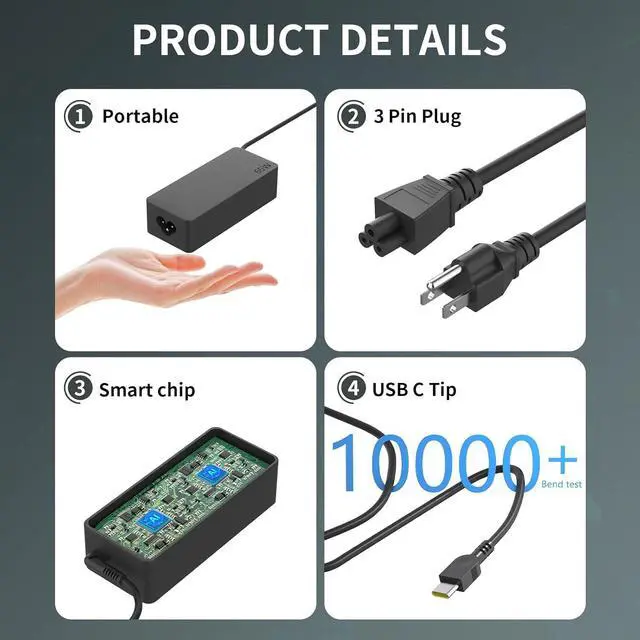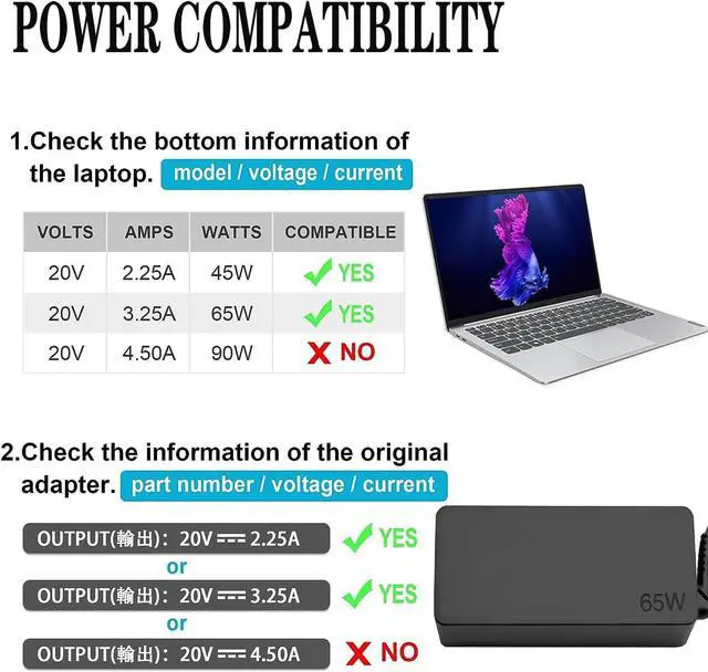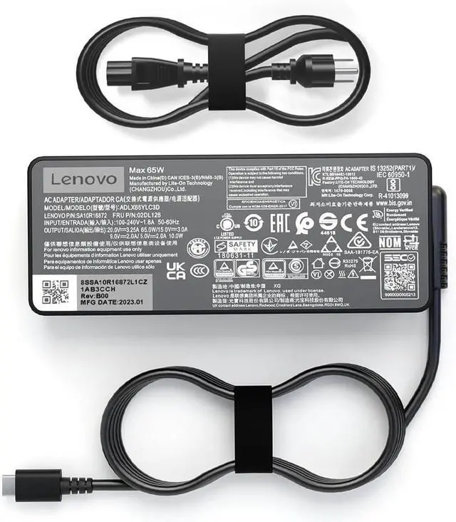 65W USB C Type C AC Charger Compatible with Lenovo ThinkPad X1 t480 T480S P43s P51s P52s P53s/P14s P15s P16s Yoga Chromebook ThinkBook Series ADLX65YLC3D Laptop Power Adapter