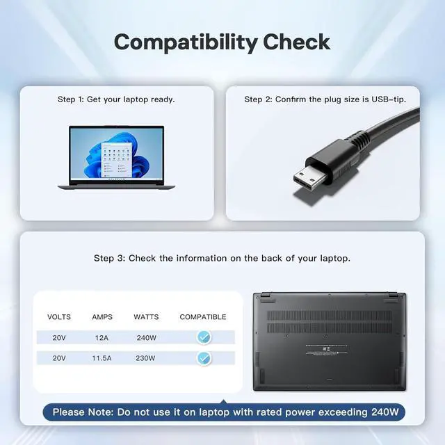 High Power Output: Delivers up to 230W (20V 11.5A ) / 240W (20V 12A) for fast, stable charging of high-performance gaming laptops