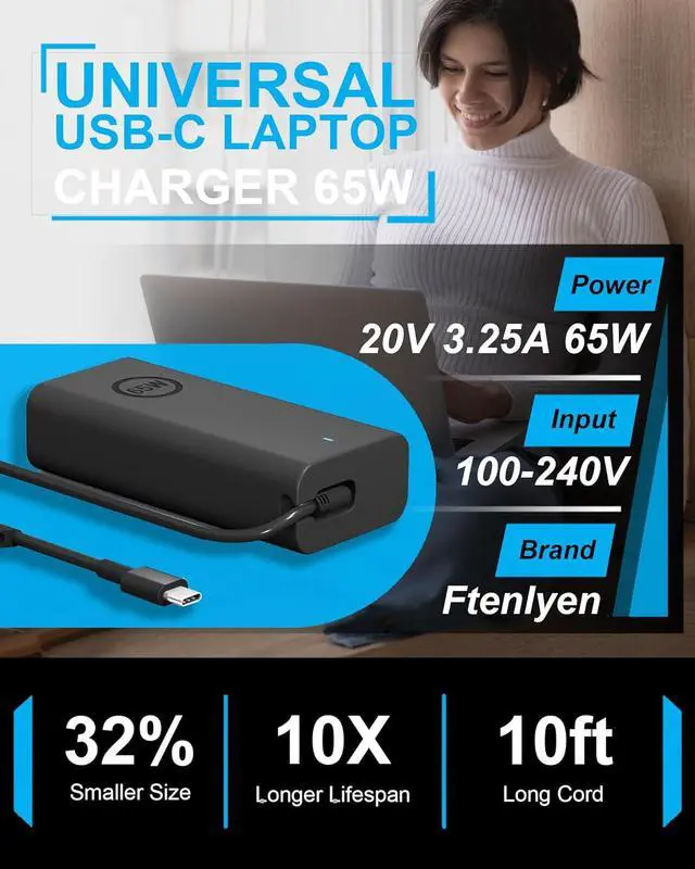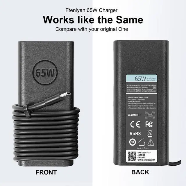 65W USB C Charger Compatible with Dell 14 Plus 2-in-1 DB04250 DB04255, 14 Plus DB14250 DB14255, Pro 14 PC14250 PC14255, Pro 14 Plus PB14250 PB14255, Pro 14 Premium PA14250, Compatible with Dell 16 Plus 2-in-1 DB06250, 16 Plus DB16250 DB16255, Pro 16 PC16250 PC16255, Pro 16 Plus PB16250 PB16255, Compatible with Pro 13 Plus PB13250 PB13255, Compatible with Dell Pro 13 Premium PA13250, Compatible with Dell Pro Rugged 13 RA13250, Pro Rugged 14 RB14250, P192G P191G P200G P199G PA16250
