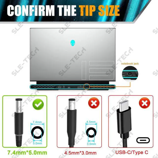Input: 100V-240V 50-60Hz, Output: 19.5V 9.23A SLE-TECH 180W Laptop Charger Compatible with 150W 130W, Connecter