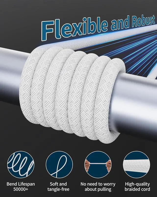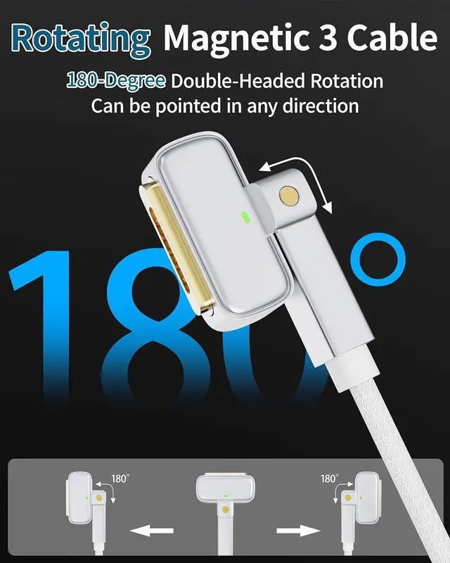 Efficient Power: This USB-C to cable is specifically designed for the latest MacBook series (M1/M2/M3/M4 chips) supporting 140W high-power output. It can charge a 16-inch MacBook Pro to 50% in just 30 minutes with a 45% faster charging speed. It is also compatible with 67W/96W adapters intelligently adjusting power output to protect the battery. Can be coiled into the size of a palm easily fitting into bags making travel and commuting hassle-free. 180° Magnetic Connection + Dual 90°