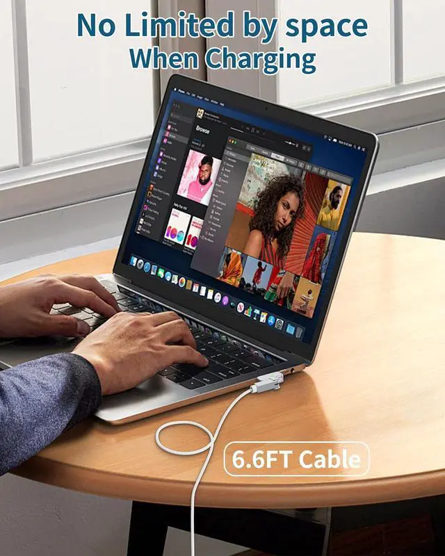 Detail: Our USB-C to Magnetic 3 Cable features a 6.6FT /2M flexible cable design allowing you to charge freely on the sofa bedside or in the meeting room without worrying about being too far from the power outlet. The high-density double-layered braided cable body effectively prevents tangling and withstands daily wear and tear. Reinforced connectors and cable connections enhance flexibility and prevent breakage extending the product's lifespan. The matte metal space grey finish seamlessly integrates with your MacBook.