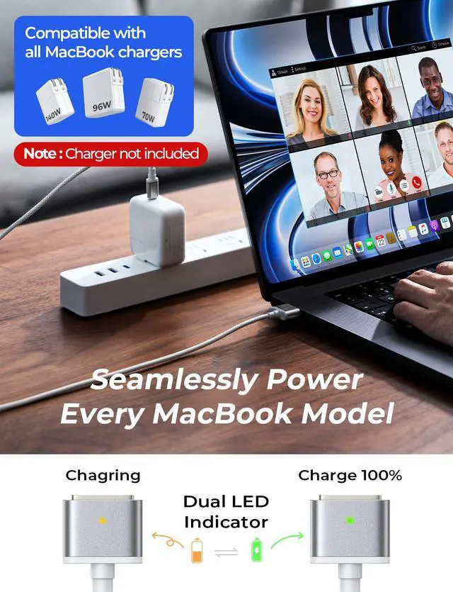 Stable Charging: This Macbook Air Charger Cord delivers a steady charging experience with a strong magnetic hold avoiding interruptions. Safely releases if tripped to protect your MacBook. LED turns amber during charging and green when fully charged3X
