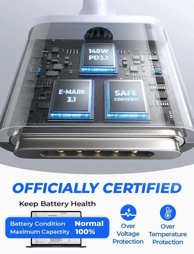 Super Fast Charging: This Magnetic Gen 3 charging cable delivers 140W PD 3.1 super fast charging speed as OEMs this usb c to Mag-Safe 3 cable powers your MacBook efficiently with a 96W or 140W adapter reaching 50% in just 30 minutes.
