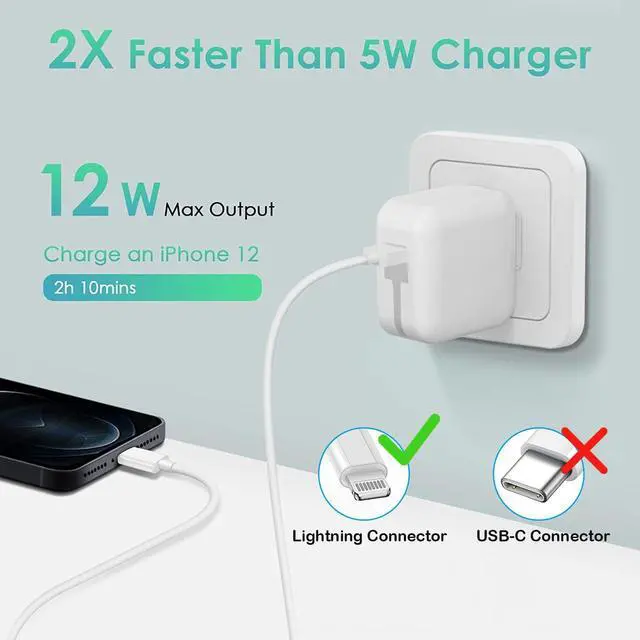?? Safety Efficient Fast Charging The iPad Air charger bulit-in multi-protection system avoiding from over-voltage over-charge over-heat etc. The smart chip including in the lightning cable match the current required by the device automatically charge your iPhone/iPad/iPod device fast safely and steadily.?? What You Get1 Pack 12W iPad charger block & 1 Pack 10FT Lightning Cord. We offer 24 hours friendly customer service If there are any quality problem please feel free to contact us. Wish you a happy shopping.