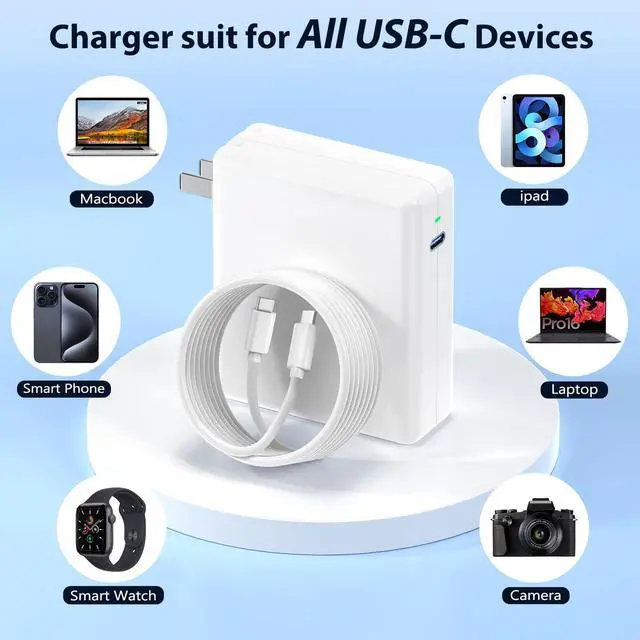 118W Super Fast ChargingDelivers up to 118W of high-speed powerfully charging most laptops in about 1 hour 20 minutes or bringing phones to 80% in just 18 minutes. Designed to keep up with the power demands of MacBook Pro/Air and other USB-C devices. Wide CompatibilityPerfect for USB C port macbook pro & macbook air 16 15 14 13 inch M1 M2 M3 M4 M5 MacBook ipad pro & air 12.9 11 10.9 inch iPad Pro & Air and all Type-C laptops tablets and smartphones. The intelligent PD chip automatically identifies and adjusts output for optimal charging performance.