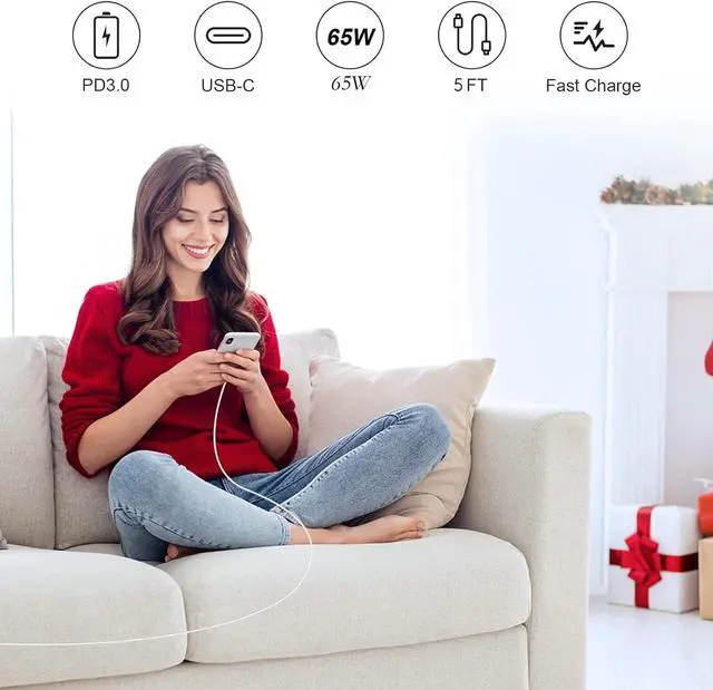 2-IN-1 FAST CHARGER: 65W USB C Charger Block has the power you need to fast charge your phone tablet and USB-C laptop from a single charger. Comes with a 5ft USB C cable*1 tested to withstand over 20 000+ bends and at the same time achieves a data transfer of up to 480Mb/s. Charge more devices with one charger and say goodbye to your old chargers!