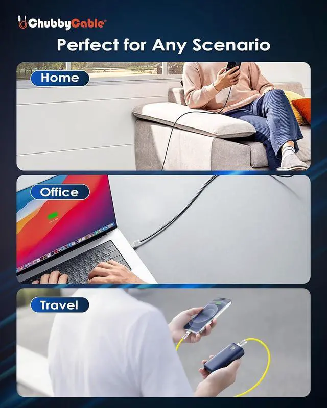SUPER-FAST CHARGING & DATA TRANSFER: ChubbyCable USB-C to USB-C cable supports up to 240W ultra-fast charging and stable data transfer.