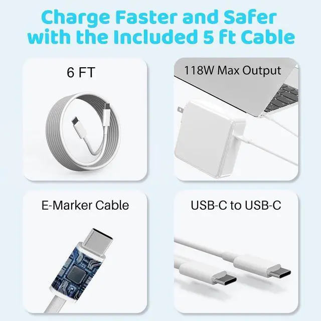 118W macbook air charger compatible with usb c port macbook pro/macbook air 16 15 14 13 inch M1 M2 M3 M4 MacBook new ipad pro/air 12.9 11 10.9 inch 2020-2023 and all usb c device laptops and smartphonesPD 3.0 charging technology the performance is higher than other replacement macbook charger like 90W 87W 70W 61W 67W 30W 29W USB C macbook charger. Whether youre a creative professional needing to juice up your 16-inch Macbook Pro quickly a student powering through assignments on your Macbook Air or a family managing multiple ipads and iphones this single charger does it all.