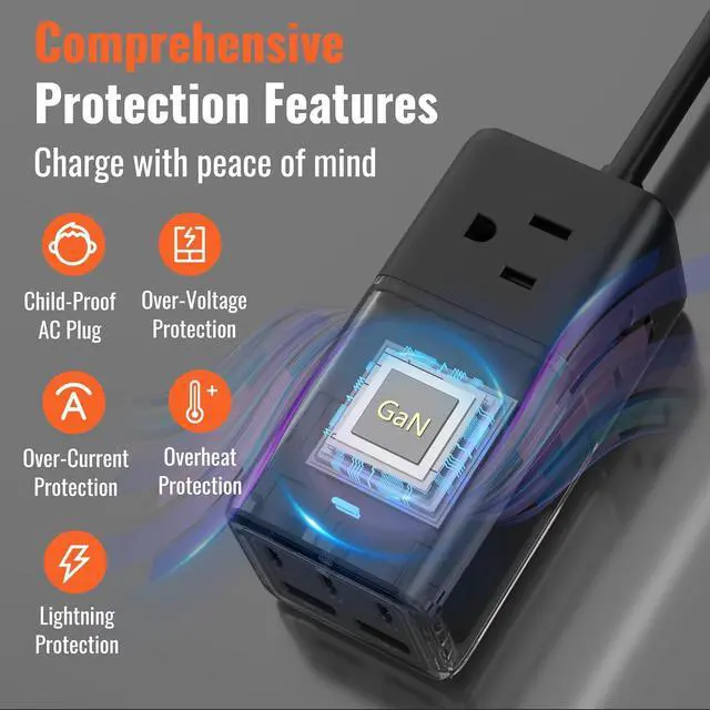 PROTECTION: This USB Charger with AC includes an integrated circuit breaker for extra protectionSAFETY: PC shell made from UL94-V0 fireproof material withstands up to 1382°F (750°C) protecting against electric shock
