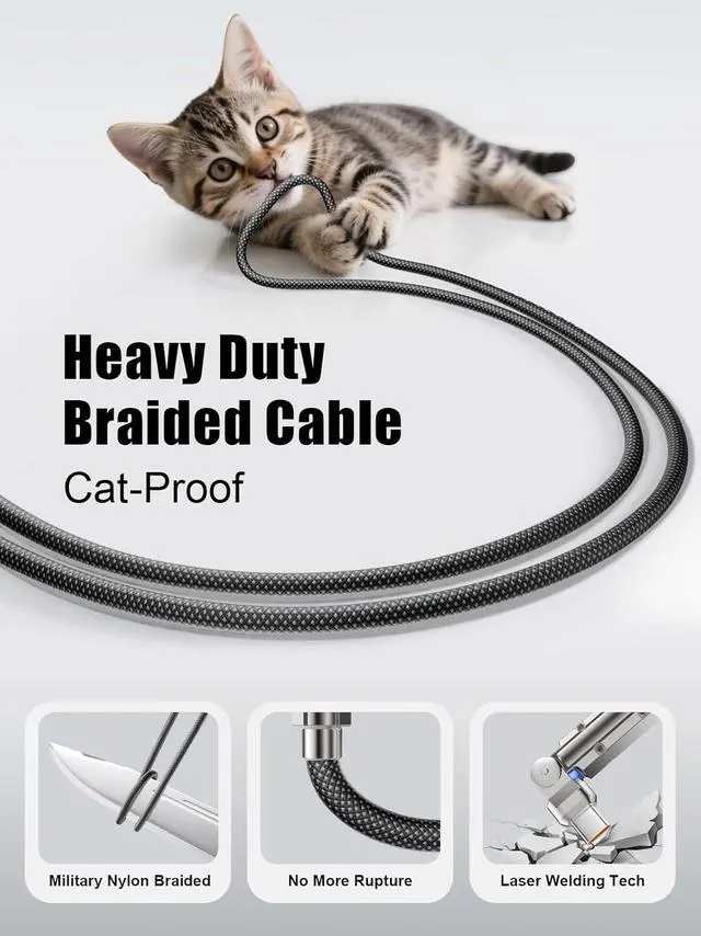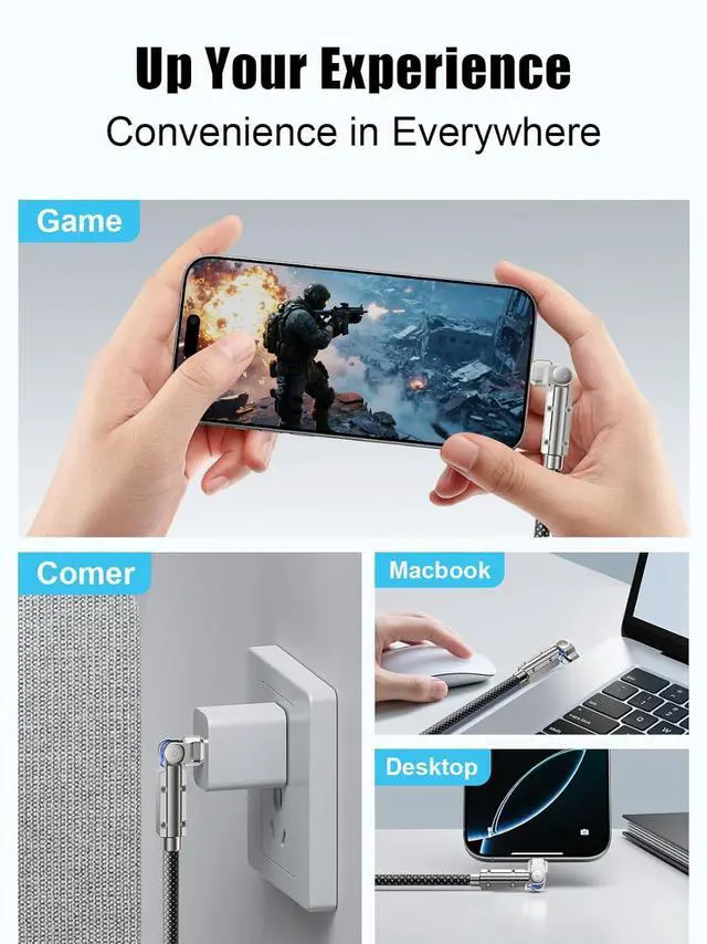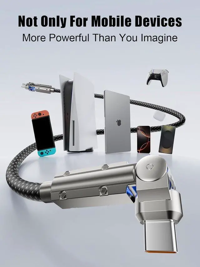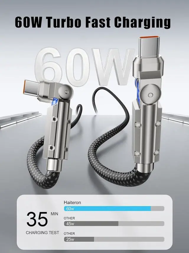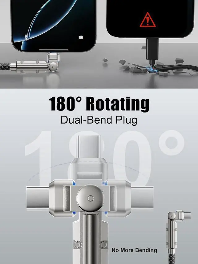 Effortless Charging: Experience unmatched convenience! The innovative 180° rotatable heads bend to fit tight spaces and lay completely flat against your device. Say goodbye to bent ports awkward angles and cords digging into your hand while gaming or browsing charge comfortably in any position. 60W