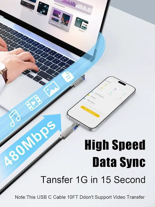 LED Indicator: Transfer files fast (480Mbps) and never lose your USB C charging cable in the dark! A subtle eye-friendly blue LED light at each end instantly confirms a secure connection and makes the Type-c cable easy to spot at night or in dimly lit rooms.