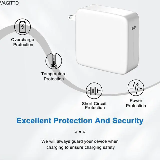 Compatibility: VAGITTO laptop charger compatible with MacBook Pro 16 / 15 / 14 / 13 inch 2024 2023 2022 2021 2020 2019 2018 2017 2016; Compatible with MacBook Air 2025 2024 2023 2022 2021 and all USB-C port devicesSafe