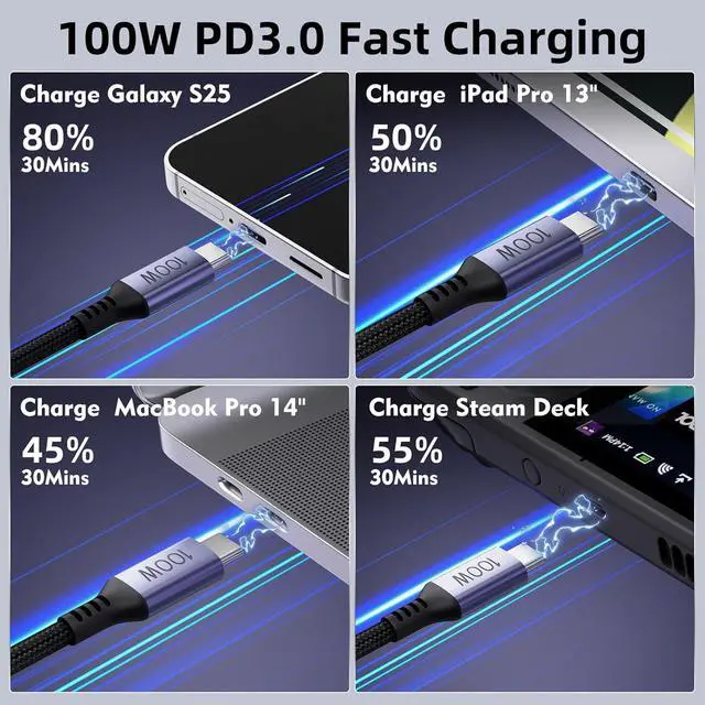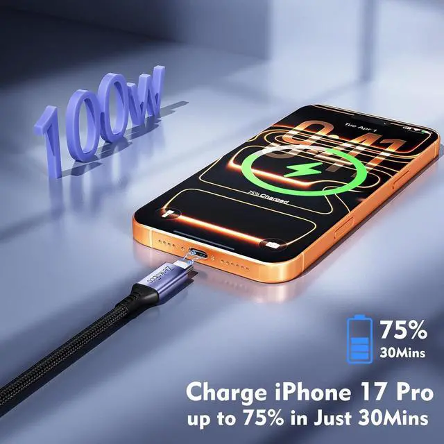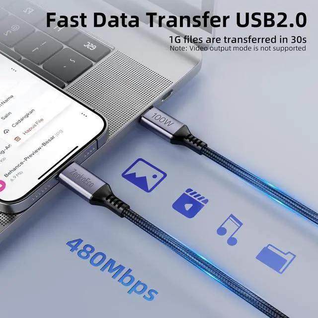 [100W Fast Charging] ZenkoEco USB C cable supports 5A/20V 100W fast charging with PD 3.0 and QC 3.0 technology it can quickly charge iPhone 17 Pro to 75% in 30 minutes; And this USB-C cable supports super fast charging 2.0 charging your S25 to 80% in 30 minute; It is backward compatible with 85W/ 65W/ 45W/ 30W/ 20W USB-C chargers[Super Fast Data Transfer] With a data transfer rate of 480Mbps this type C cable can quickly transfer documents pictures movies and music; 1G files can be easily transferred in 30 seconds.