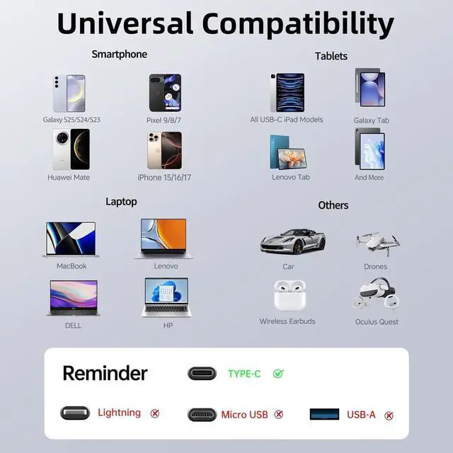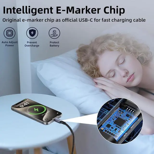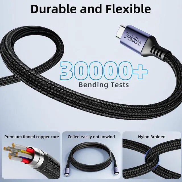 [Note: This cable does not support media display][Built-in Certified E-marker Chip] The chip is equipped with over-current over-heating and over-voltage protection in this USB-C cable; It intelligently matches the required current and voltage you can use it to charge any device fastly and safely while sleeping and playing[Perfect Compatibility] ZenkoEco 100W USB-C cable is compatible with virtually all USB-C devices including phones laptops tablets VR devices and video game consoles wireless Earbuds Android auto Carplay such as iPhone 17/16 series Galaxy Google Pixel iPad Air/Pro/Mini MacBook Pro/Air Galaxy Tab XPS Quest 3S Microsoft Surface Laptop/Surface Pro Switch Steam Deck and more[18 Months Warranty] Each box contains two 6.6 feet USB-C to USB-C cables; Before shipment each cable has undergone rigorous performance tests; Friendly and professional customer service to solve any issues you encounter; Additionally You can get 18 months warranty