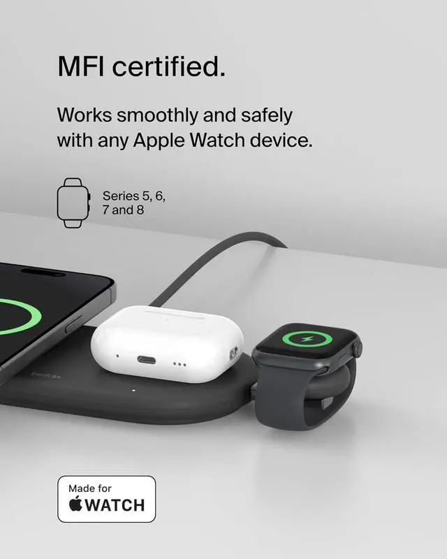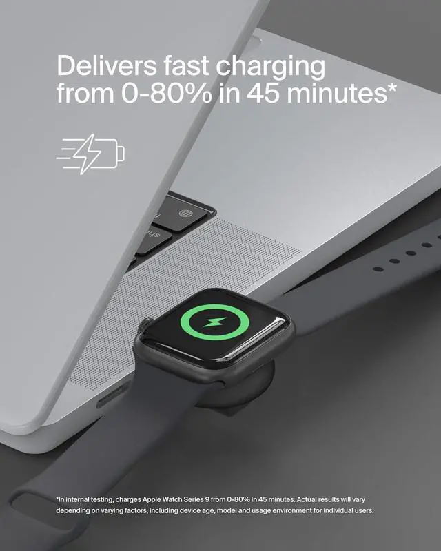 FAST CHARGING: BoostCharge Portable Watch Charger provides fast charging support specifically to the Watch 7 Series and later from 0-80% in just 45 minutes as well as Watch Ultra and Ultra 2 up to 5W.