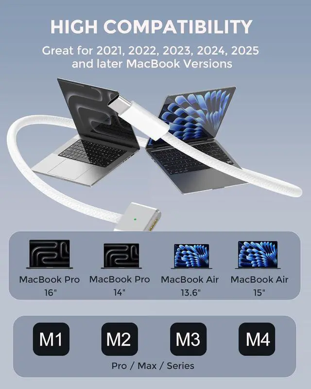 Dependable Warranty: Compatible with MacBook Pro 16 / 14 inch (M4 2024) (M3 2023) (M2 2022) (M1 2021); MacBook Air 13.6 inch (M4 2025) (M3 2024) (M2 2022); MacBook Air 15 inch (M4 2025) (M3 2024) (M2 2023); model a2452 a2458 a2485 a2780 a2442 a2918 a2992 a2779 a3401 a2681 a2941 a3113...; enjoy worry-free 12-month warranty by refund or replacement and friendly customer service.