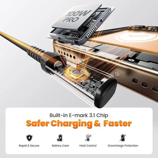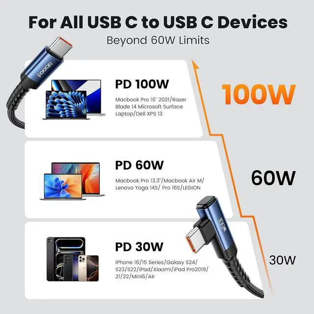Protocol: This USB C to USB C Cable 10ft delivers up to 100W Max power output with PD 3.1 fast charge compatibility supporting backward charging speeds at 65W/40W/20W/15W for MacBook iPad Pro Galaxy S24 Ultra and other USB-C devices480Mbps