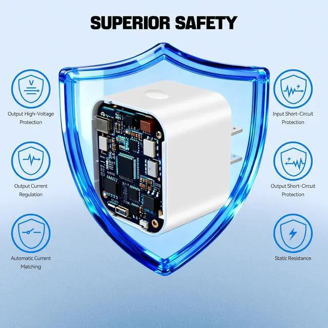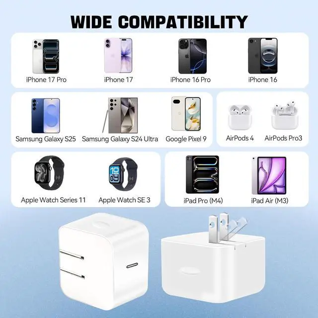 [40-60W PD Fast Charging] This 40W dynamic power adapter supports 40W-60W power adjustment is compatible with the PD 3.0 fast charging protocol and features multi-gear PDO output (5V/9V/12V/15V/20V) as well as AVS adaptive voltage regulation. The 40w charger can quickly recharge phones tablets or laptops in just 30 minutes[Foldable Plug & Ultimate Portability] This 40w charger features a single USB-C foldable plug design. The prongs are fully retractable when folded allowing for easy storage without taking up space. It is a compact and lightweight charger block fitting effortlessly into backpacks or pockets and is ideal for various scenarios such as travel and office use[Multiple Safety Protections] The 40W dynamic power adapter is equipped with an advanced E-marker smart chip that enables real-time device communication automatically adjusting voltage and current to effectively prevent overcharging overvoltage short circuits and overheating.