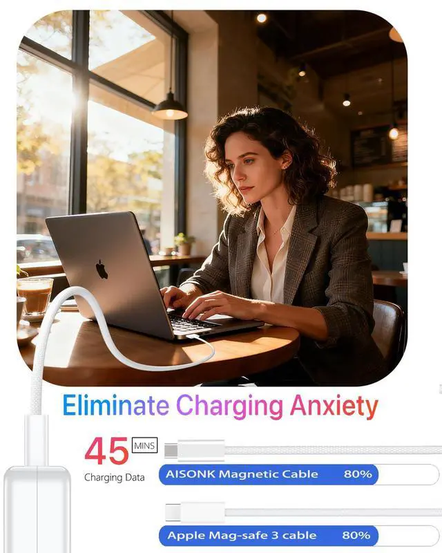 Effortless Magnetic Snap: USB-C to Magnetic 3 cable features a powerful magnet that instantly aligns and locks onto your MacBook Air or MacBook Pros port. The fast and secure connection prevents accidental tugs so you can keep charging whether you're working streaming or on the go.