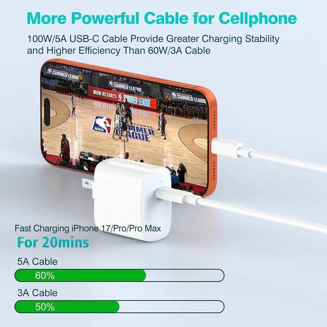 Super Fast Charging: made of top-rated thicker copper wire to support 100W 20V 5A through provide you greater charging stability and higher efficiency fast charging MacBook Pro 16 inch up to 50% in 30mins while 60W cable is only 30% also great for iPhone 16 15 series charge iPhone 15 Pro Max to 50% in just 25mins while 3A cable is 30mins; support 480Mbps high speed data syncE-Marker Chip and