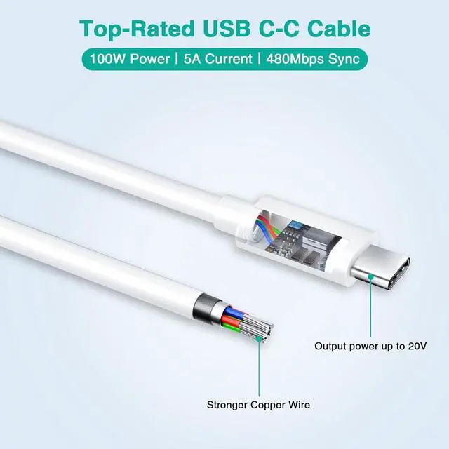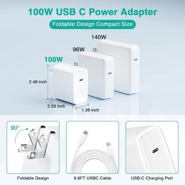 USB-C Cable: Our 100w laptop power adapter is smaller than the original 140W/96W/70W models. Perfect for on-the-go use delivering high-speed charging in a pocket-sized build. Includes a durable 5A USB-C to USB-C cable max 100W power delivery and 480Mbps data transfer. Tested for 20 000+ bendsensuring longer lifespan than standard cablesSuperior Safety and