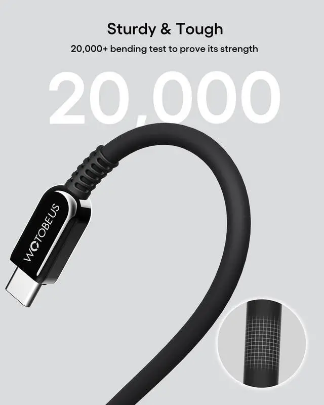 BALANCED EVERYDAY LENGTH: WOTOBEUS 6.5FT USB-C PD cable offers the ideal reach for sofa bedside and office setups giving you flexibility without tangling or excess slack. It includes a reusable strap to keep the cable neatly organized. Long enough to move around freely while charging yet compact enough to store easily this length is the best all-around choice for daily use at home work or school. 2m / 6.5FT 100W PD 3.0 +