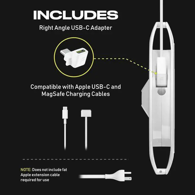 USB C ready: Includes removable inserts and a right angle USB C adapter so you can use it with compatible USB C and MagSafe MacBook chargers that match our sizing guide.