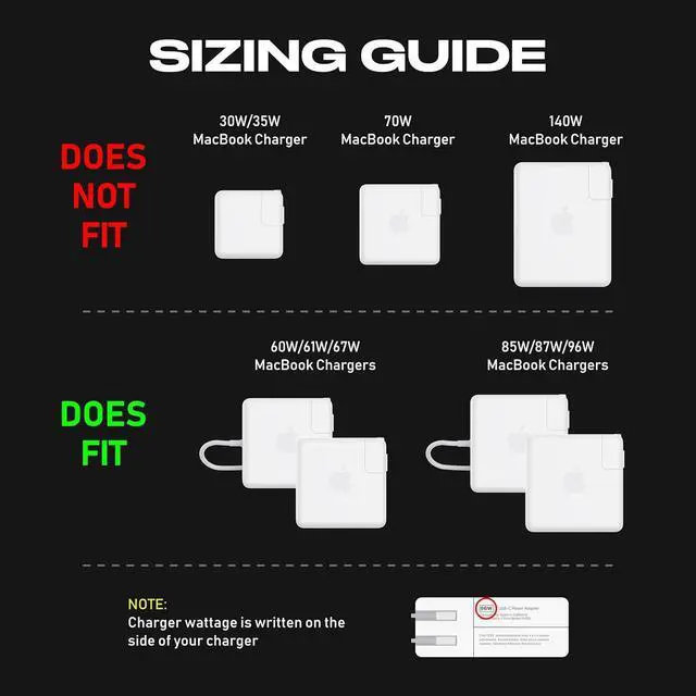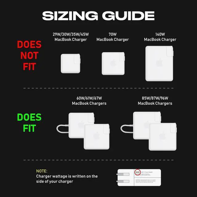Does fit: 60W 61W 67W 85W 87W 96W MacBook Pro chargers only.