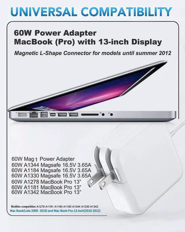 Output: DC 16.5V - 3.65A; Second generation of power adapter The L-tip connectorReplacement charger power adapter for Mac Pro 13 after 2012 with