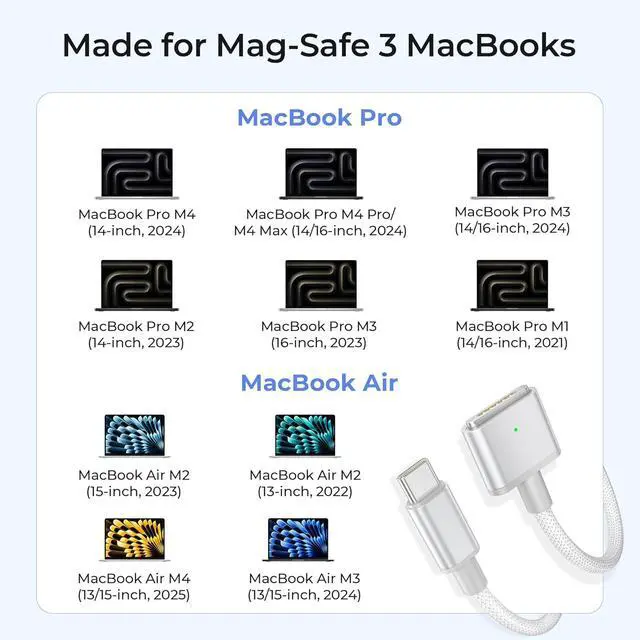 Magnetic 3 MacBooks: Designed exclusively for MacBooks with a magnetic safe 3 port including MacBook Pro 14-in (2021) MacBook Pro 16-in (2021) MacBook Pro 14-in (M2 2023) MacBook Pro 16-in (M3 2023) MacBook Pro 14-in (M4 2024) MacBook Pro 16-in (M4 Pro 2024) MacBook Air 13-in (M2 2022) MacBook Air 13-in (M3 2024) MacBook Air 15-in (M3 2024) MacBook Air 13-in (M4 2025) MacBook Air 15-in (M4 2025). Not compatible with older MacBooks or non-Mag//Safe devices! Easy-to-Read