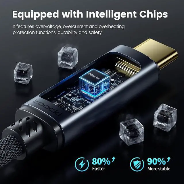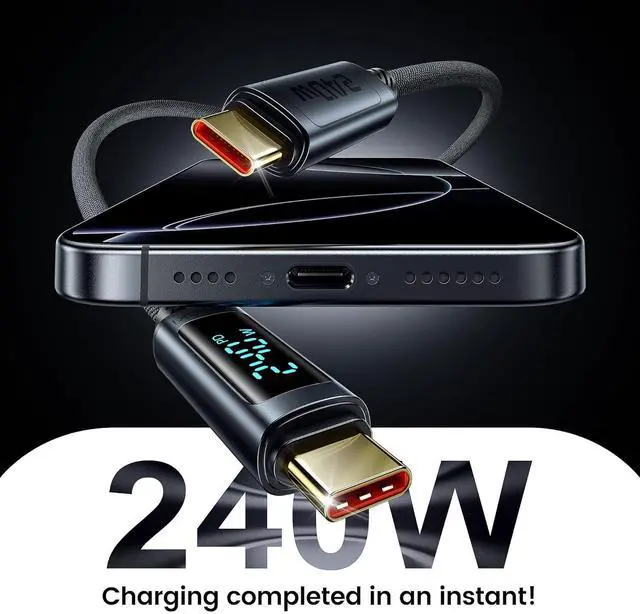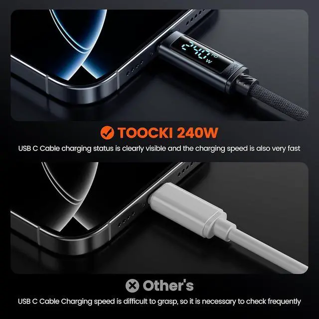 TRANSFER: Toocki 240W USB C to USB C Cable works with MacBook Pro/Air (M3/M2/M1/Intel) iPad Pro M4 (2024) iPhone 16/15 series and Galaxy S24/Pixel 8 Pro for fast charging transfers 1GB files in 30s Backward compatible with 140W/100W/60W chargers240W