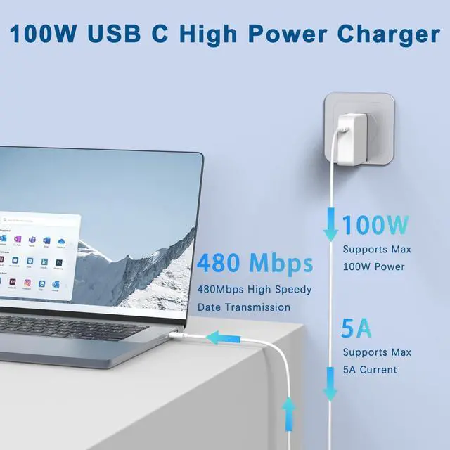 Compatible Device: The 100W Ultra Fast USB C Charger is Designed Specifically for Charging your USB C MacBook. When Charging the MacBook USB C port The Charging Performance is Greater Than That of the 87W/67W/61W/30W Charger. Compatible with MacBook Pro 16 15 14 13 inches New MacBook Air 13 inches 2021/2020/2019/2018 iPad Pro 12.9 11 inch 2020/2018 and iPad Air 10.9 inches (2020) iPad Mini 6 HP As Well As All C-type Interface Devices Laptops and Android PhonesSafe and