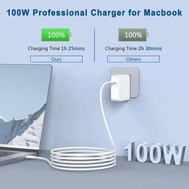 High-efficiency Fast Charger: Our USB C macbook charging takes only 1 hour and 35 minutes to fully charge a 16-inch Mac Book Pro and only 30 minutes to quickly charge a 14-inch Mac Book Pro up to 50% dramatically reducing charging time.