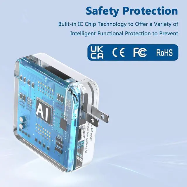 Device Guarantee: The surface is made of flame-retardant polycarbonate (V0) each product undergoes strict quality checks to ensure your device is charged safely. USB C power adapter with built-in intelligent chip protection - Can automatically and intelligently identify your device and provide the fastest and most efficient output current to prevent overload overheating overcurrent overvoltage and short circuit and maintain a long service lifeCustomers