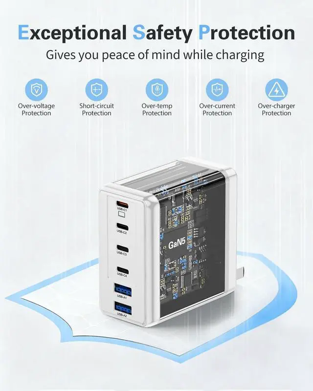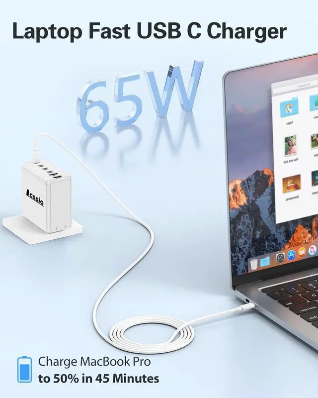 Super Fast Charging: Experience lightning-fast charging with our 200W USB C Charger which integrates the latest PD 3.1 protocol and delivers fast charging capabilities. Charge your MacBook Pro 16 from 0% to 50% in just 45 minutes when using a USB C charging cable. 6-Port USB C Wall
