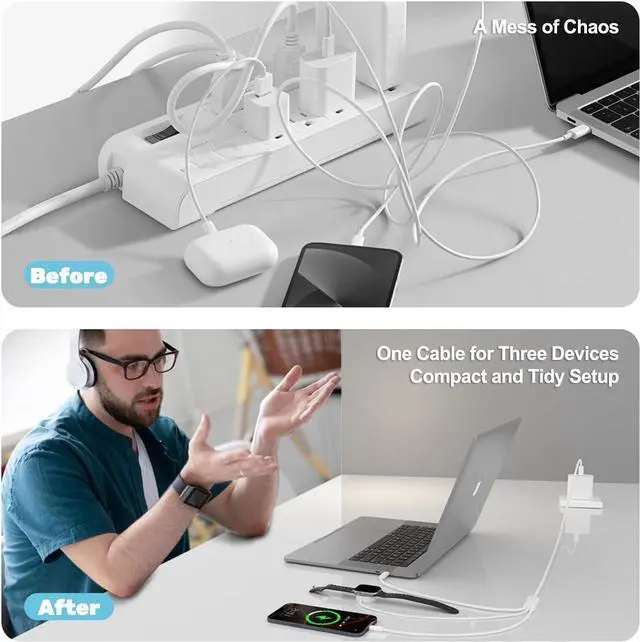 Wide Compatibility: Our multi charger for devices designed for Watch Ultra 2/Ultra/SE 2/SE/11/10/9/8/7/6/5/4/3/2/1 iPhone 17/17 Pro/17 Pro Max iPhone 16/16 Pro/16 Pro Max/16 Plus iPhone 15/15 Pro/15 Pro Max/15 Plus iPad Pro/Air/mini AirPods 4/Pro 2/Pro/Max.
