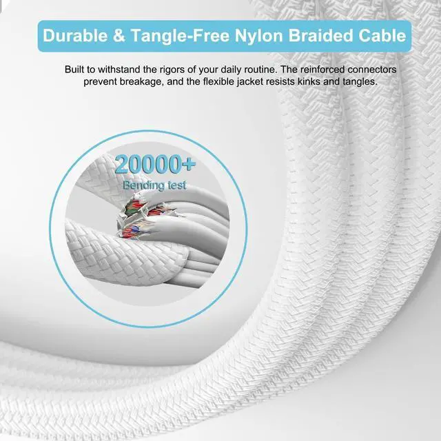 Durability for Daily Use: Braided nylon exterior and reinforced alloy connectors withstand 45 000+ bends. Built to handle travel office use college essentials and daily charging.