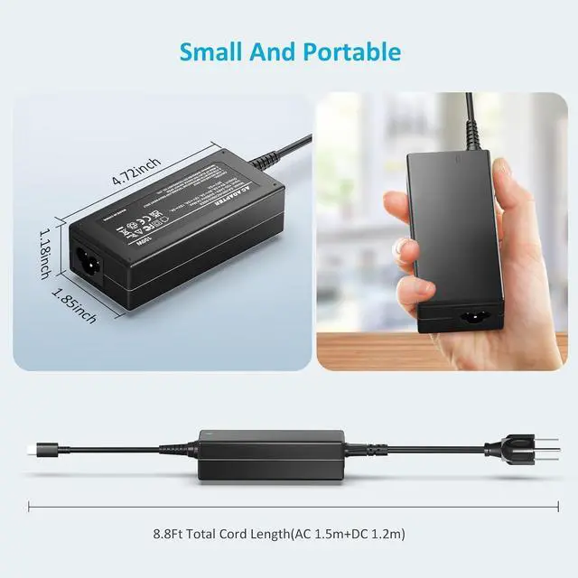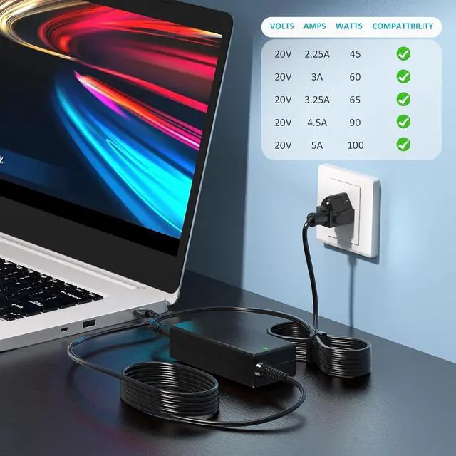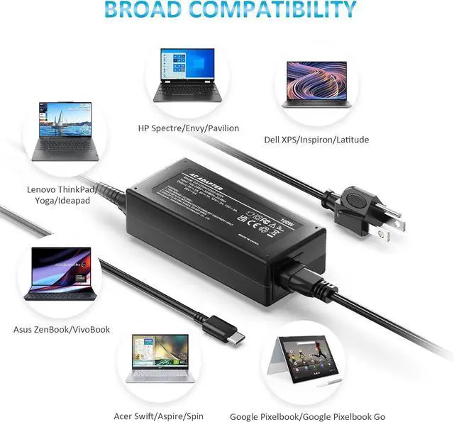 Max Watts: 100W. The USB C laptop charger 100W supports PD 3.0 fast charging and is compatible with USB C chargers smaller than 100W such as 96W 90W 85W 65W 60W 45W 30W 20W and 15W. Note that to protect the charging safety of your device the smart chip will automatically adjust the actual output power to match the maximum charging power supported by your deviceSafe & Convenient-- The 100W USB C charger is made of high-quality materials. It also provides practical overvoltage protection over-current protection overcharge protection short circuit protection overheating protection and surge protection. The USB C laptop charger 100W is safe efficient and long-lasting. It adopts a classic desktop design reducing the burden of socket space and providing more stable contactCompatibility-- The 100W USB C laptop charger compatible with MacBook Pro 13-inch 2021 2019 2018 2017 2016 (A1706/ A1707/ A1708/ A1718) MacBook Pro 14-inch M3 2023 M2 2022 M1 2021 2021 (A2442) MacBook Pro 15-inch 2021 2020 2018 2017 2016 (A1706/ A1707/ A1708/ A1719) MacBook Pro 16-inch M3 2023 M2 2022 M1 2021 2021 2019 (A2166) Compatibility-- The 100W USB C power adapter compatible with MacBook Air 15 inch M3 2024 M2 2023 ( A2442 A2485 A2458 A2452 A2681 A2779 A2780) Air 13 inch M3 2024 M2 2022 13.3 / 13.6 Inch M2 2022 M1 2020 (A2337 A2179 A1932) MacBook Air Retina 13-inch 2020 2019 2018 Retina 12-inch Early 2017 2016 2015 (A1534/