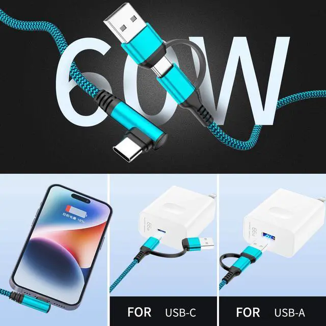 Universal Compatibility: The USB C cable is Compatible with virtually all USB-C devices including phones tablets and laptops. For exampleFor Phone 15 iPhone 15 Plus iPhone 15 Pro iPhone 15 Pro Max iPad Pro 2021/2020/2019/2018 iPad Air 4 iPad mini 6 For Galaxy S22/S21/S20 Plus/S10/S9/Note20/Note20 Ultra/Note10/Note10 Plus/Note9/Note FE/A90/A80/A72/A60/A51/A12 and more devices with usb c fast chargerWhat you get: 3 Pack 60W 2 in 1 Multi USB A/C to USB-C Cable and our product have 18-month after-sale warranty. If you have any problem please feel free to contact our customer services.