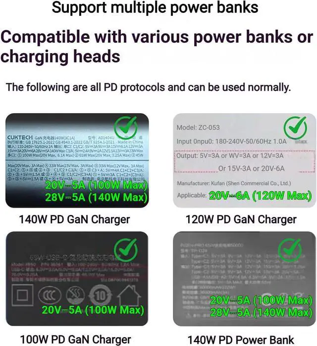 Premium Material: The shell is made of zinc alloy support and the interface is nickel-plated for excellent oxidation resistance and durability. rapid heat dissipation. Built-in PD smart chip and supports up to 100W fast charging.